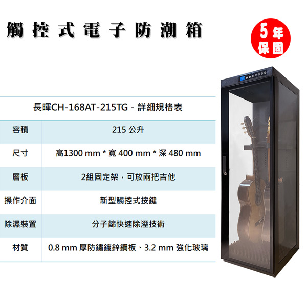 【長暉】215公升吉他觸控式工業級除溼電子防潮箱(裸透感)全新升級