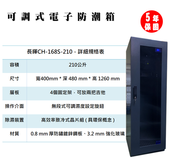 長暉CH-168AS-210可調式數位顯示210公升防潮箱